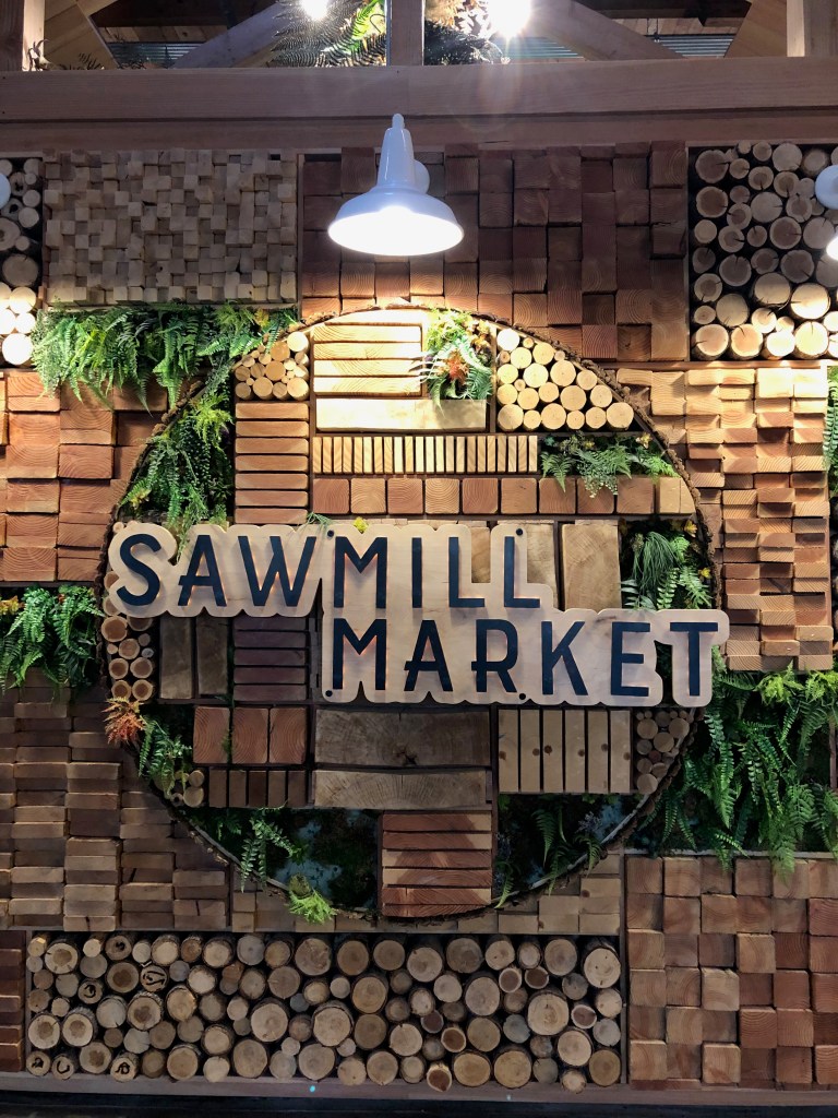 We finally arrived at Sawmill Market, and it was such a lively place! Tons of food choices, a brewery, and cocktail selections. They have a lot of seating indoors, inside, and outside. It’s a great place to go with friends, families, or even have a date night!