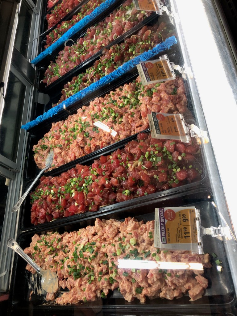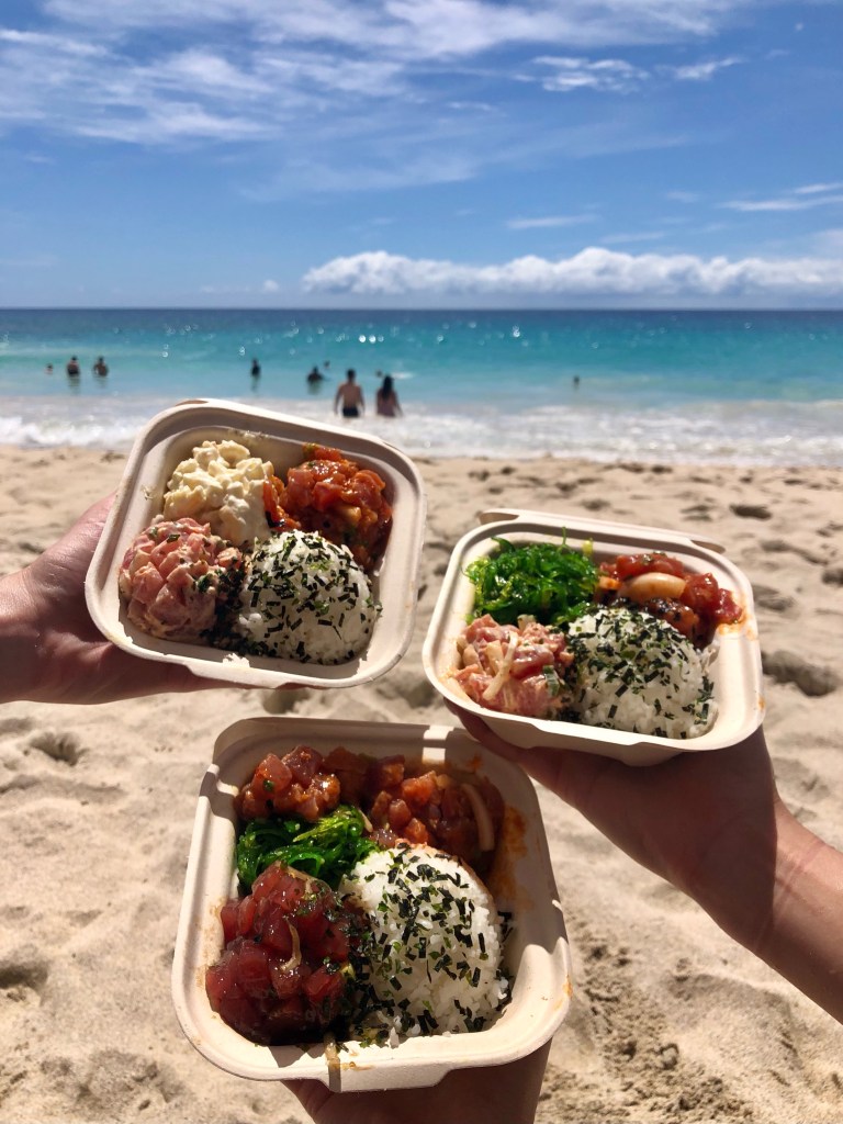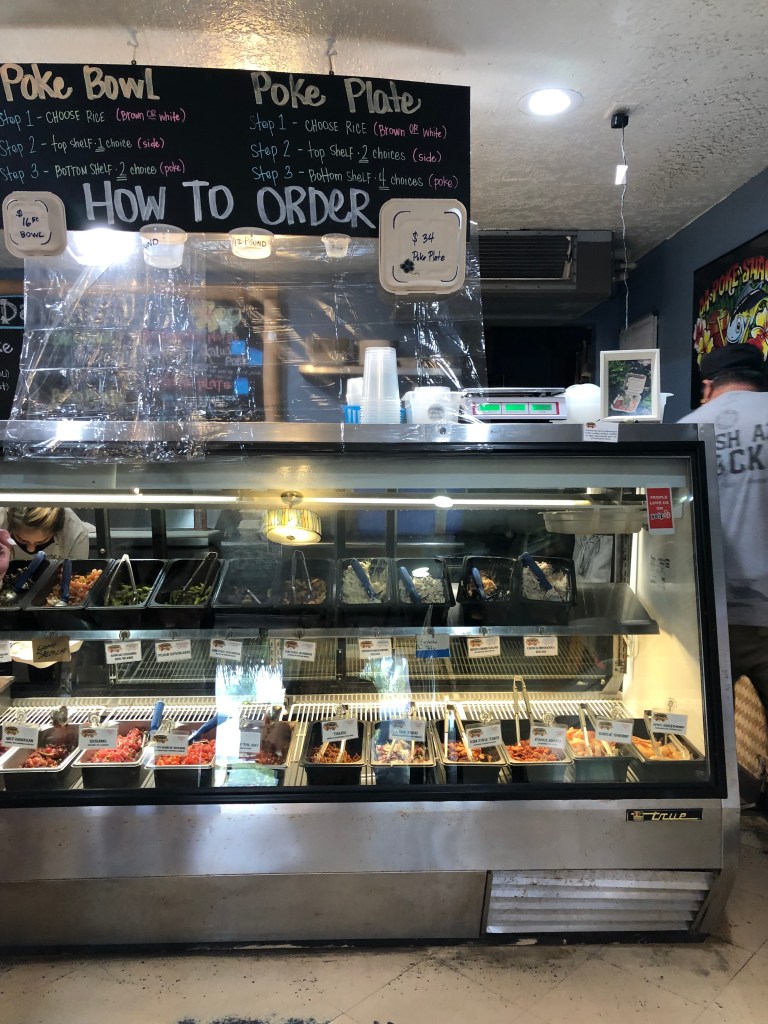 We went here twice during the trip! It was yummy! A little pricey but worth it. The parking lot is tiny, and there are only two tables to eat at. The first time, we ate there, and the second time, we brought it to the beach. I got the shoyu & the spicy garlic sesame with seaweed salad.