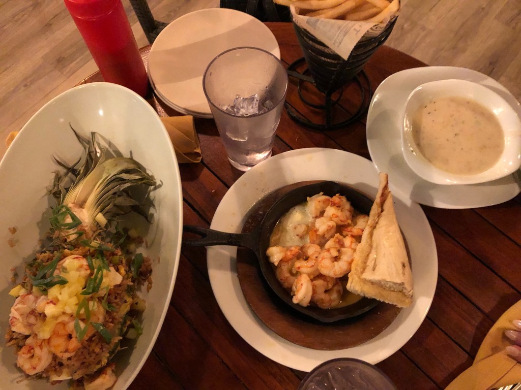 We weren’t seated outside, but inside, and we could still hear the live music outside! The food was good – not sure if it was super good because we were so hungry after our sunset sail!
