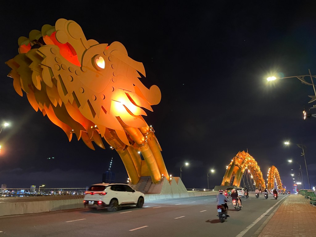 This bridge was located about 5-10 minute walk from my uncle’s house. So cool!! The design is so unique! I saw this bridge almost every single day I was here, during the day, evening, and night. You can walk across the bridge and see the beautiful view of the water and the buildings. On the weekends at 9pm, the dragon blows out fire and water. It is about a 5 minute show. It gets crowded. They also stop the traffic for the show a few minutes prior so that everyone can go in the middle of the bridge too.