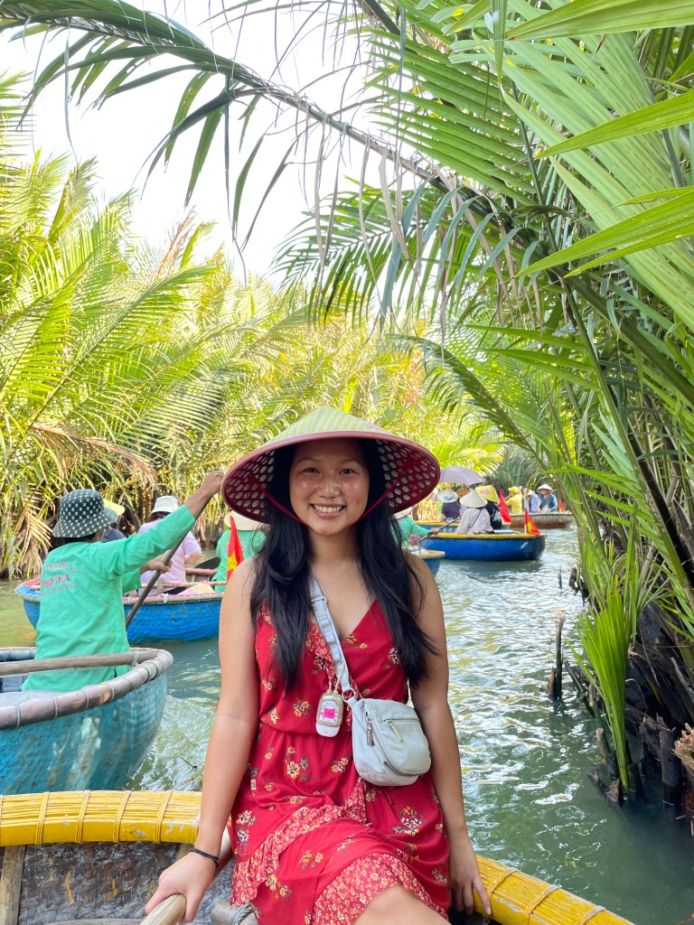 Lastly, Hoi An. This town is not in Da Nang. It is about a 45 minute drive south. My cousins and I stayed overnight. I would recommend to go to Hoi An later in the afternoon and stay to see the lights and lanterns lit up around downtown Hoi An and in the water and all. We got there around 2/3pm, checked into the hotel. Then, we called a Grab to take us to the Coconut Basket Boat ride. It was about a 10 minute drive out of downtown Hoi An. The coconut basket boat ride was about a 40ish minute ride through the water. They provide the nong la (traditional Vietnamese hat) or an umbrella to use to as shade. If I am being completely honest, we were ripped off. We understand that some countries raise their prices (because they need money) and they know that I am the tourist and not an actual native Vietnamese citizen – however, it did not feel good. They tried to distract me to get into the coconut boat, while my cousin was paying for it. I wished I stayed back with my cousin and denied them to lower the price. It left a sour taste in my mouth (and ofcourse, I always focus on the positive and gratefulness – that I get to bond with my cousin. We are also “helping” these Vietnamese people with their business by paying more)…but if they did not rip us off, maybe we would have tipped more at the end. I do not want to sound shallow nor selfish, but it does not feel good to be ripped off! Besides that downfall, I enjoyed the ride through the water, seeing the plants, and all. They also have an area where they can spin you around on a coconut boat (if you want to do that). They can spin you for as long as you want and you can tell worker to stop spinning when you want them to. I went for 1 minute before I got more dizzy haha. We gave him a little bit of tip for that. After that, there is an area where people are singing karaoke on the water, and then they bring you back to the start. If you decide to go on this coconut boat tour, becareful of getting ripped off! Read some more reviews on Trip Advisor and such. Minus 1 point for Hoi An on that part.