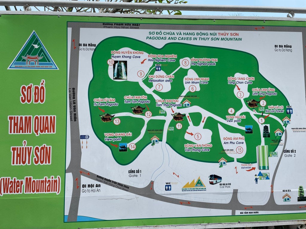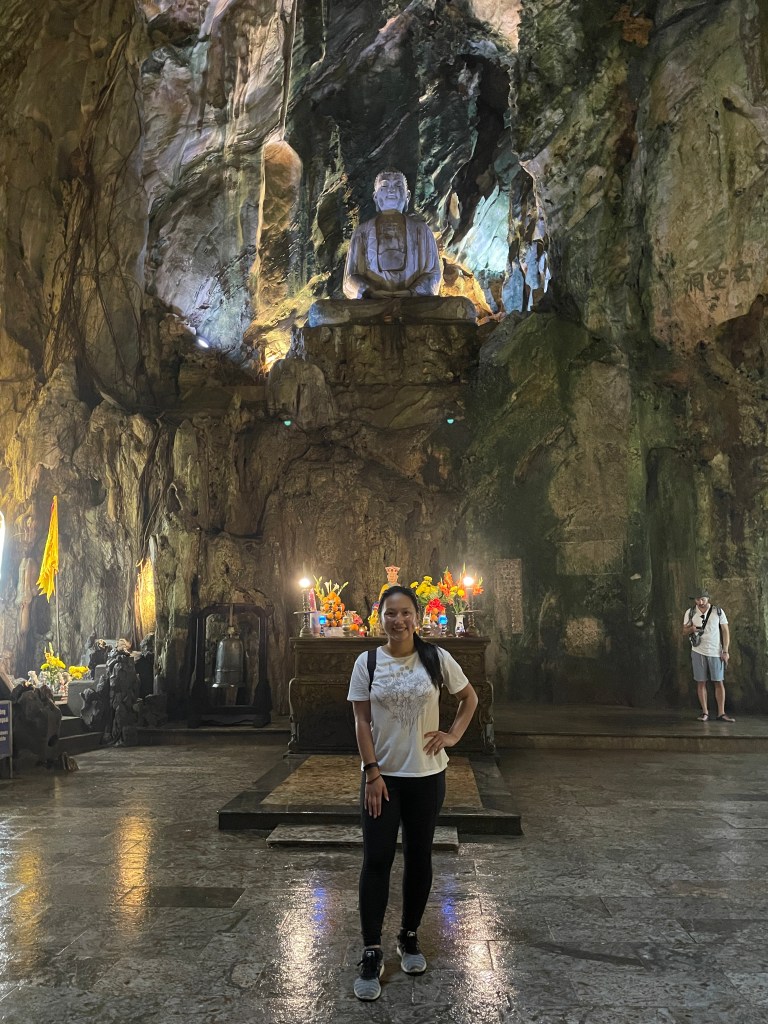 Marble Mountains consist of 5 mountains that has a name for each element. I think you are only able to go inside 1 mountain (I could be wrong haha), and the mountain we went to (Thuy Son) has 2 different entries. Wear comfortable SHOES. Tennis shoes, hiking shoes, etc. There are A LOT of stairs and climbing to see the beautiful temples inside and outside the mountains. Bring a hat, sunglasses, and/or sunscreen since some of the walk/hike is outdoors (until you go inside a cave).The first entry that we went to is called Am Phu Cave (number 15 on the map) and it cost $20,000 VND per person. It was a smaller cave, but had about 5 different spots inside to see the Buddha statues and all. There is one part where you can climb to get to the top. Also, be aware that it can be very slippery from the natural water that goes into the mountain/caves. Once you get to the top, there is a very narrow “hole” to climb to get in and out of. Once you reach the top, there is a very small space to stand around and take photos. When I went back down, it was more scary to me than going up. I was afraid to slip and fall, so be extra careful!
