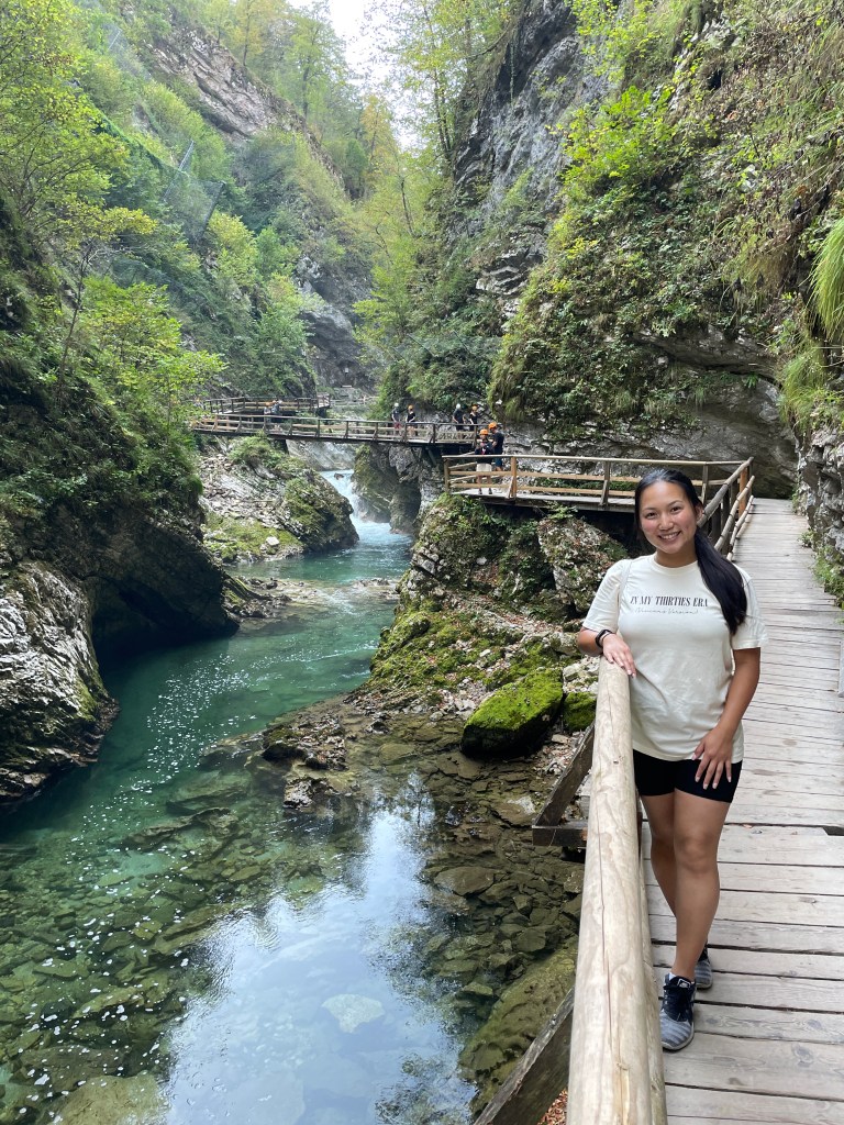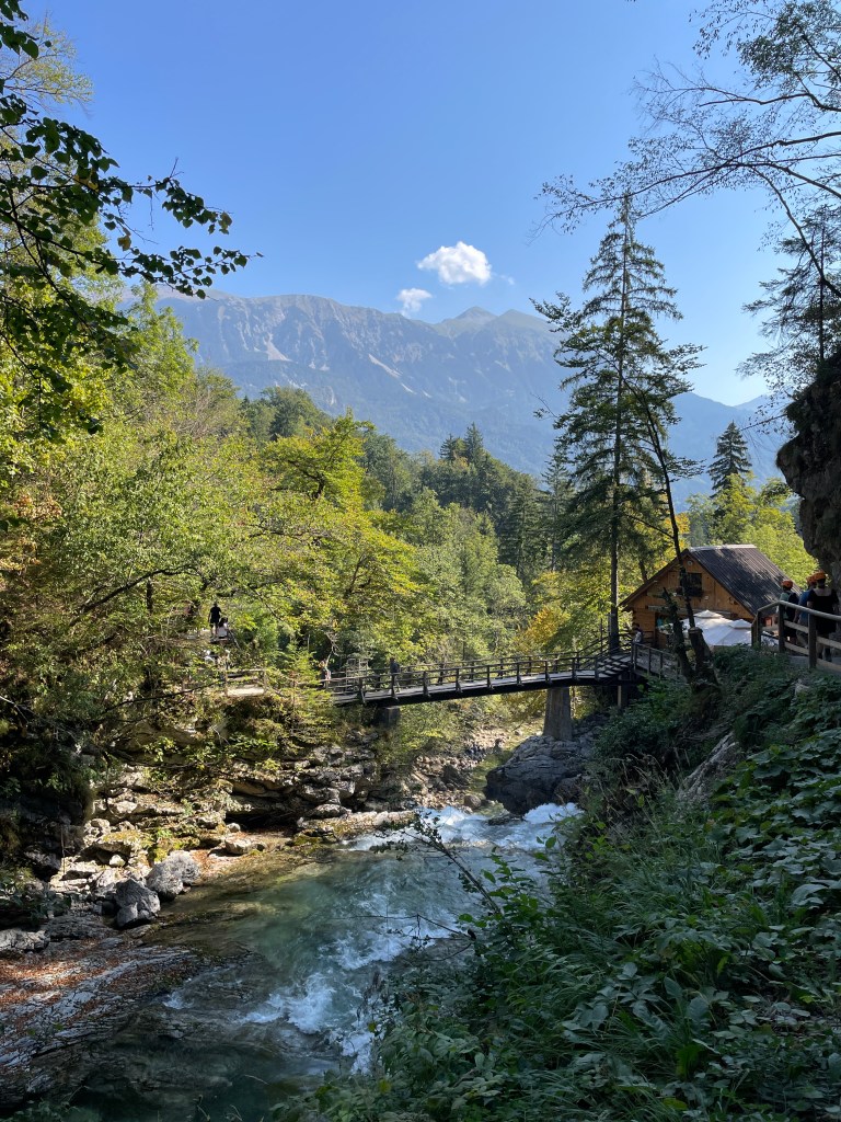 This hiking spot is located 15 minutes away from Lake Bled, and you can take a bus, drive, or walk here. We decided to walk from Lake Bled to Vintgar Gorge and it took about 45 minutes (speed walking). It was very nice to see the neighborhoods and cute little houses. Vintgar Gorge costs $10 euros and they only let a certain amount of people in at a time, so make sure you book online before you go. Once you get there, you will need to scan your QR code. They will give you a helmet, because there are some areas where you could hurt yourself and hit your head, so becareful. I took my helmet off at certain parts for photos haha! The water is GORGEOUS. Super clear, green, and lucious. It was a beautiful trail for about an hour. Once you get to the end, you return the helmet, and there are clean free restrooms, thank goodness! Then there are two routes to get back to the main entrance or even back to Lake Bled. So we literally HIKED our way back to Lake Bled. I thought Vintgar Gorge would loop us back to the beginning, but it did not, so it was an adventure to get back to Lake Bled. There was a regular bus, but also a train station. I was SHOCKED that there was a train station in the “middle of nowhere” in Slovenia, but it was functional and safe! It only took a few minutes to get back to the West side of Lake Bled and we walked back to the hotel. Vintgar Gorge is beautiful and is also part of the Triglav National Park.
