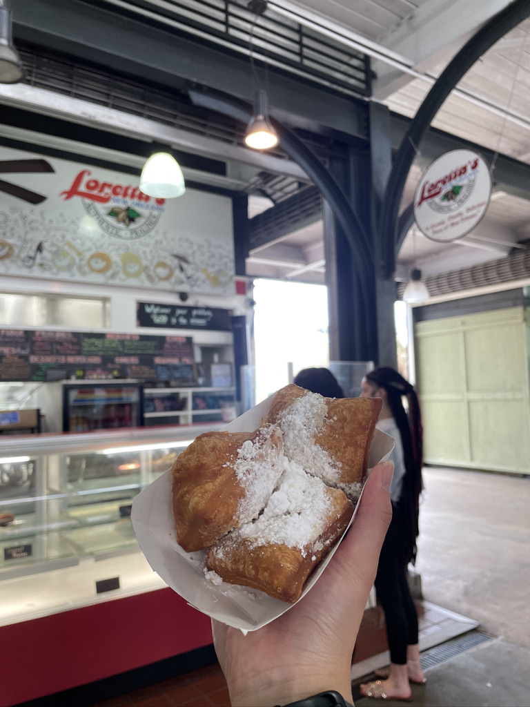 We are almost at the end of my blog, and you are probably thinking…Vivian, where is the beignets?! Cafe Du Monde beignets? Nah, Cafe Du Monde lines were LONG. Sure, I should have got it especially in New Orleans, but since I travelled with a big group, I did not want them to wait for me, so I got Loretta’s instead. I read a few travel blogs and two uber drivers told me that Cafe Du Monde is overrated and that I should try Loretta’s. Loretta’s did not disappoint! I waited about 5-10 minutes in line to order, and about 10-15 minutes for the delicious beignets to come. It was hot and fresh! Loretta’s is located in the French Market!