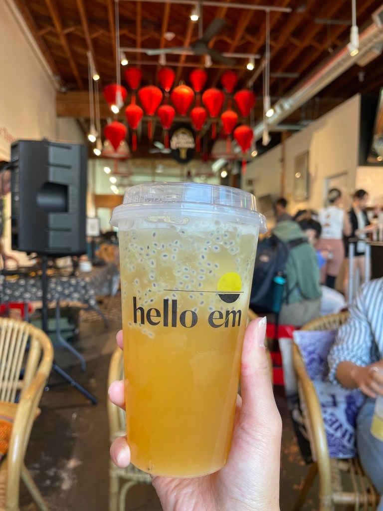 It was an aesthetically pleasing Vietnamese coffee shop. As you read above, I don’t drink coffee, so I got the rambutan & passionfruit oolong tea along with the pate banh mi. It was really good!