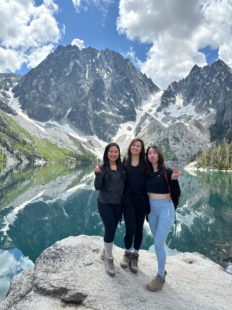 This was about a three hour drive east towards Leavenworth. We left our Airbnb at 4:30am and arrived at 7:30am, but did not start the hike until 8:00am. Once you get closer, you will drive on pave dirt for about 1-3 miles. If you get there early enough, you can park your car in the parking lot area, but if you don’t, you will park your car on the side of the road. We parked the car on the side of the road but we were not too far from the entrance. There is only 1 restroom (not flushable and no soap), so bring wipes and hand sanitizers! Before you go on the hike, you will have to pay $5 and get the receipt and put it on the dashboard of your car. The hike itself is about 4.5 miles in and 4.5 miles out, so a total of 9 miles round trip. The first two miles was not too bad, but once you cross the 2nd bridge, the incline starts to build and there are huge rocks. I am short so my legs were going up high. If you have walking sticks, that may help you. There are a ton of mosquitoes and we got bit a couple of times, so please bring bug spray. There’s also two “toilets” on the hike up. I quote “toilets” because it’s a hole (well that’s what the hikers told us haha). Once you get to the lake, it will be a reward! It was absolutely beautiful! We got there and it was a bit cloudly so the lake looked a bit dark, then the sun came out, and the color of the lake turned aqua/turquoise color – it was so beautiful! I was so close to taking a quick dip in the lake BUT the clouds came back and believe it or not, it started to rain and thunder! Mother nature is something else. I am glad we saw the weather change because we got to see the different colors of the lake! The hike back down was harder than going up, maybe because my legs/feet were tired and it was also raining. It was hard on my legs to go down since the rocks were so high up. Take your time and enjoy the hike. It was one of the most beautiful hike and lake I’ve seen yet. Don’t forget to pack water and snacks too!