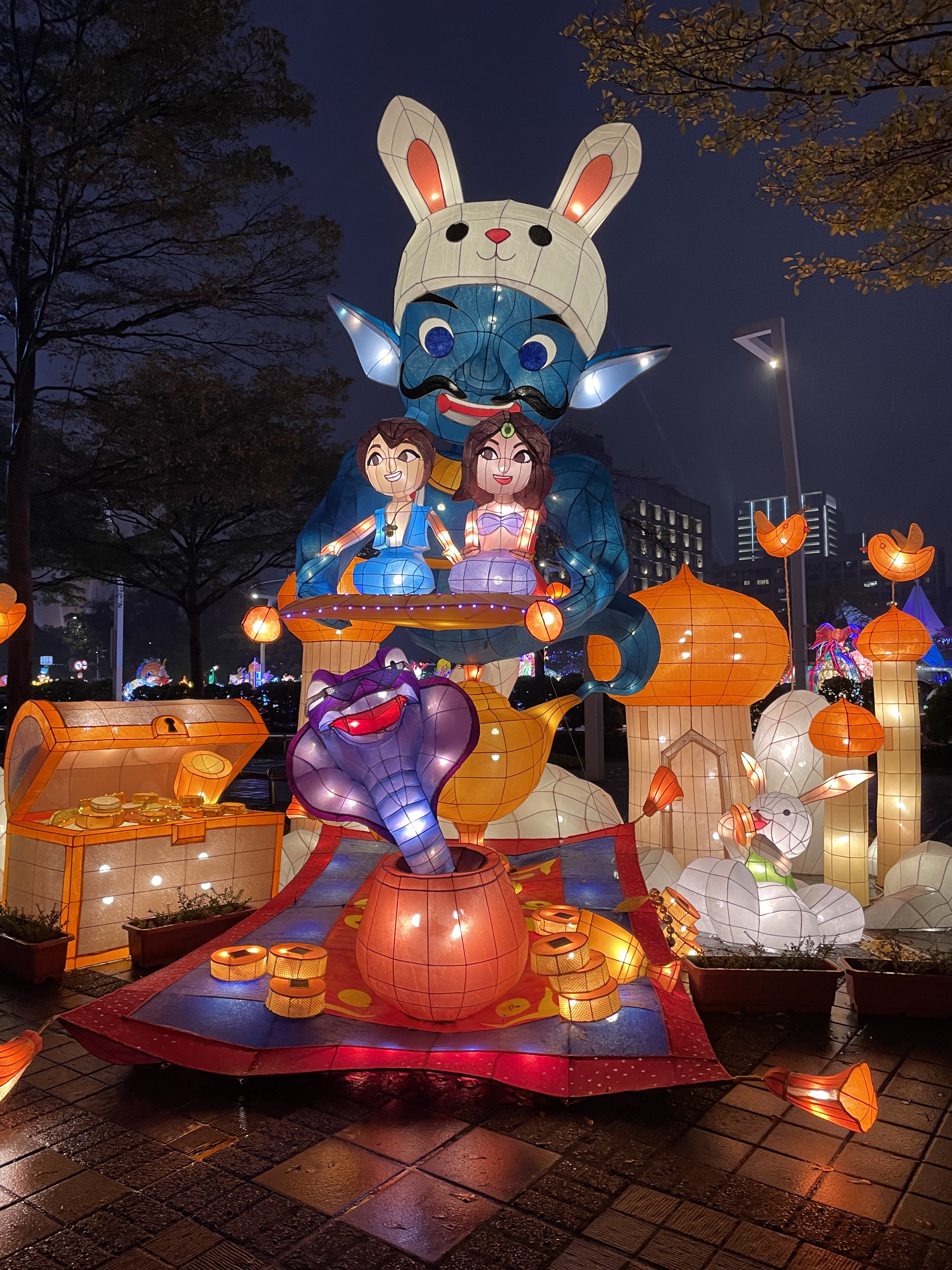I went to Taipei during the Taiwan Lantern Festival. There seem to be a couple of lantern festivals. One is the Pingxi lantern festival, which is where you release the lanterns into the sky (and I missed it, because I landed in Taipei the day of). There was another one called the Taiwan lantern festival, which consisted of hundreds of beautiful and color lanterns (not your normal circle/oval shaped lanterns). These lanterns had characters, animals, etc. and it was lit all over Taipei for about 2.5 weeks. They even had a cute bunny show (since 2023 is Year of the Rabbit, but in Vietnamese culture, it is Year of the Cat). For the Taiwan Lantern Festival, they brought it back after 20+ years, so I am not sure if they will continue it moving forward, but I hope they do, because it was so beautiful. I will show photos and tell more information of it below.